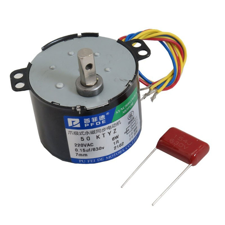 موتور 50KTYZ یک موتور 220 ولت AC است که با فرکانس 50 هرتز کار می کند در حداکثر دور 1RPM توان خروجی 6 وات را منتقل می کند. گیربکس دور پایین این موتور امکان انتقال حداکثر گشتاور را ممکن می سازد. گشتاور نامی این موتور گیربکس در توان نامی برابر با 50 (Kg.cm) می باشد. از این موتور گیربکس دار 220 ولت می توان در شرایط دمایی منفی 20 درجه سانتی گراد تا مثبت 80 درجه سانتیگراد استفاده نمود به همین دلیل از این موتور گیربکس دار کوچک دور پایین، معمولا در مصارفی همچون موتور جوجه کشی، موتور جوجه گردان فر و اجاق گاز، ویترین ها، میزهای نمایشگاهی گردان، صنایع پخت و پز، میکسرها و ... به صورت گسترده ای استفاده می شود. از مزایای بسیار مهم این موتور گیربکس کوچک قابلیت کار به صورت چپگرد و راستگردوراه اندازی ساده و سیم بندی ساده ی آن می باشد.